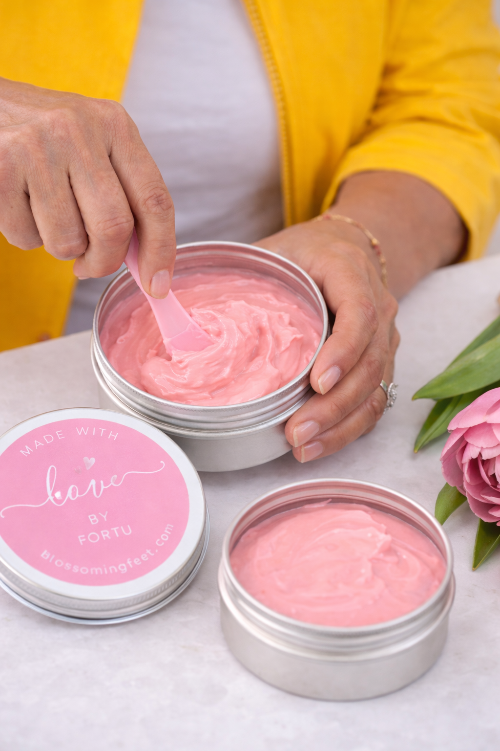 Blossoming Feet is the culmination of 20 years of beauty industry expertise, redirected toward the body’s most hardworking (and often most ignored) foundation. I believe your feet deserve the same level of luxury and care as your face. My signature formula uses potent natural ingredients to soothe, calm, and revitalize dry skin, proving that true beauty begins with your feet.
